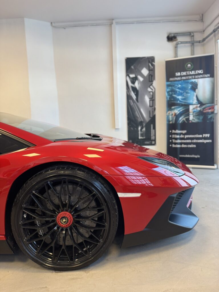 Chez SB Detailing, nous avons eu le privilège de travailler sur une Lamborghini Aventador SV, véritable chef-d’œuvre de performance et de design.