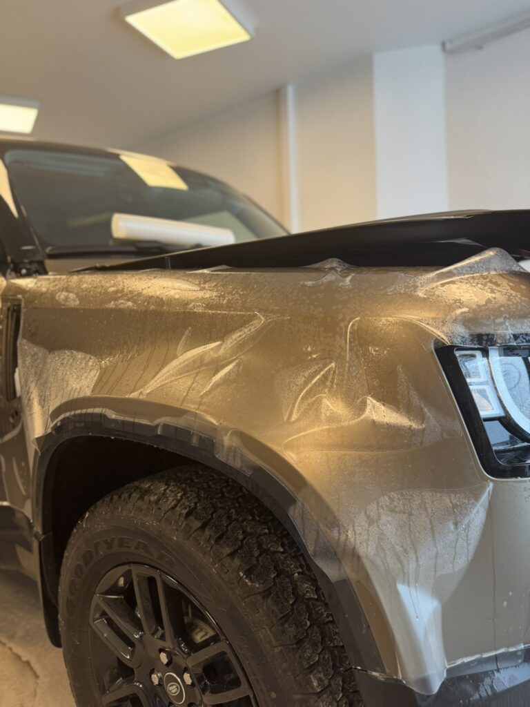La pose complète d’un PPF sur un Defender P90 nécessite un véritable savoir-faire :