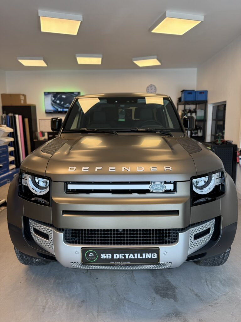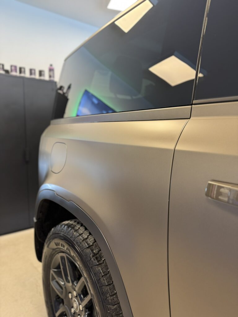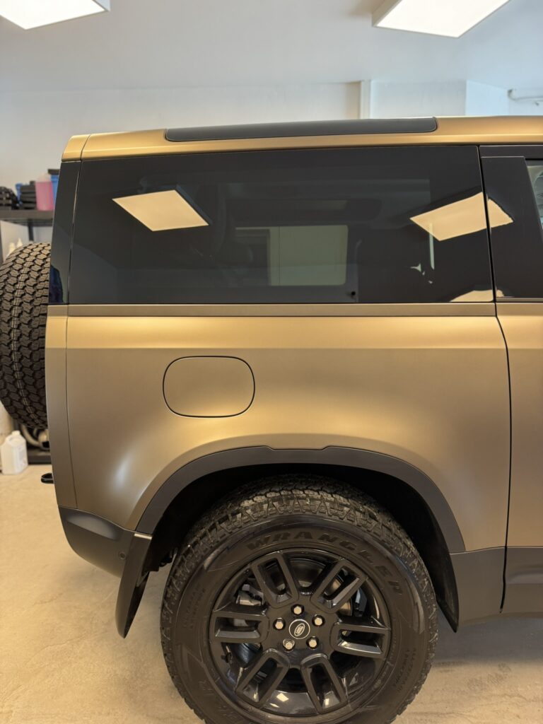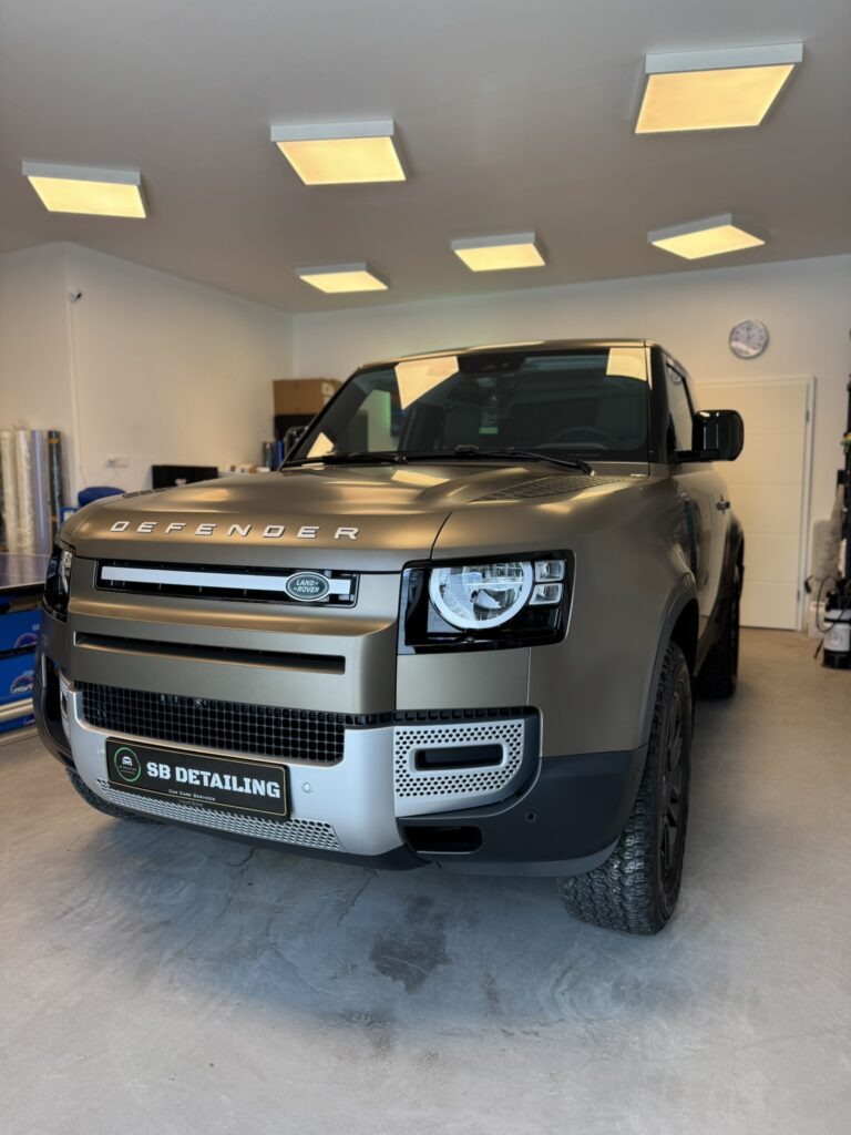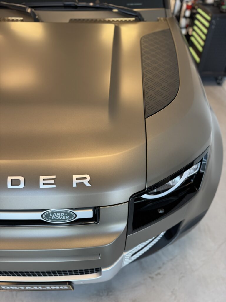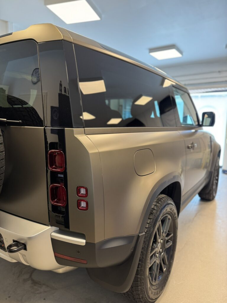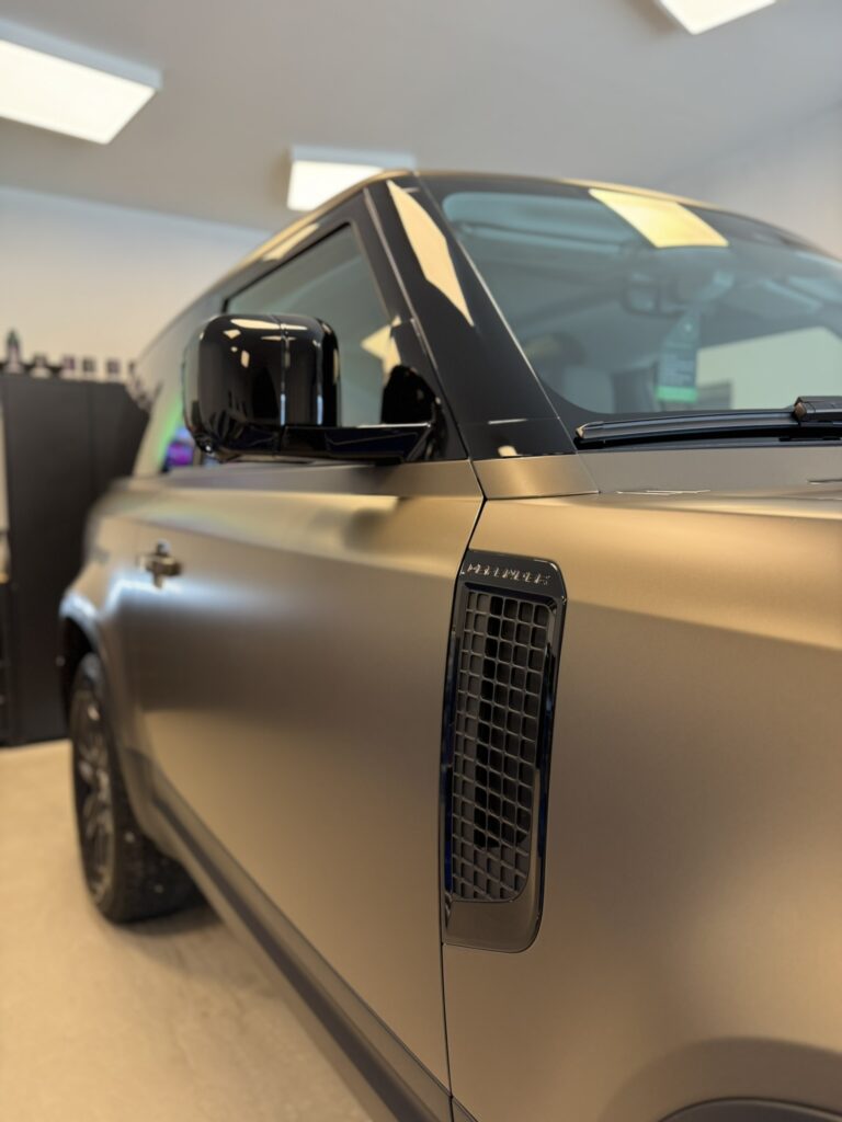 Chaque projet est l’occasion de repousser les standards en matière de protection et de rendu esthétique. Nous vous présentons ici une réalisation complète : la pose d’un film PPF satin sur un Defender P90, combinant élégance, discrétion et protection durable.