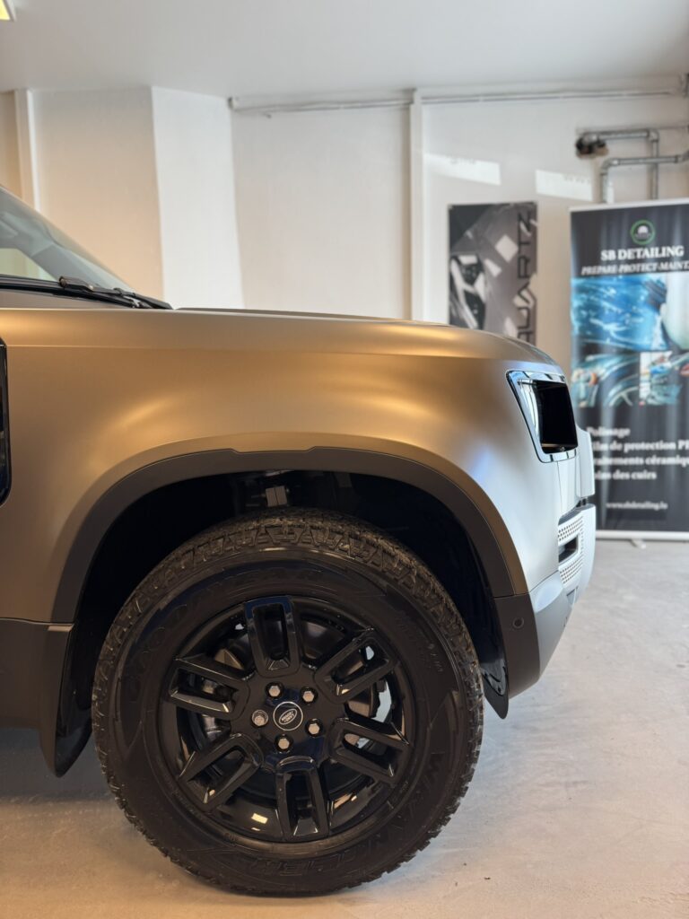 Pose d’un film PPF satin sur un Defender P90 : protection et finition premium